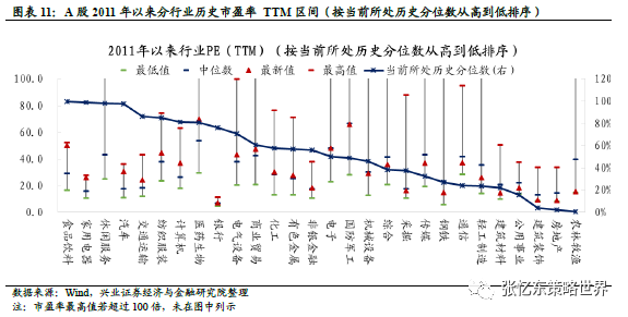 截至12月18日,从PE(TTM)的角度,行业估值分位数特征如下: