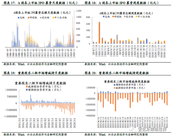 本周A股IPO募资总额为98.7亿元;A股定增募资143.0亿元。本周重要股东净减持约180.2亿元,其中增持约33.7亿元,减持约213.9亿元。限售股解禁市值约1837.9亿元,下周解禁约753.3亿元。