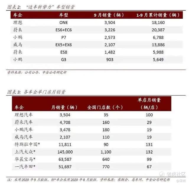 在产品形态上,特斯拉过去既有轿车也有SUV,在中国畅销的Model 3是轿车,即将上市的Model Y是一款紧凑型SUV;蔚来和理想一开始为了避开和特斯拉的直接竞争,都是推出的SUV车型,但蔚来今年9月开始交付的EC6是一款轿跑型SUV,小鹏先推出的G3是SUV,P7是G3之后的新车型,起量很快。
