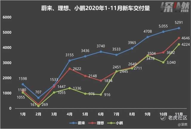 5000辆是一个标志性的关口。蔚来在10月首次交付超过5000辆,理想和小鹏都在11月超过了4000辆,不出意外12月应该能跨过5000大关。而且根据理想公开的数据,11月理想实现单月工厂生产超过5000辆,11月定单数量超过当月产量,成为全球造车新势力中最快实现单月产量和定单量超5000辆的品牌。