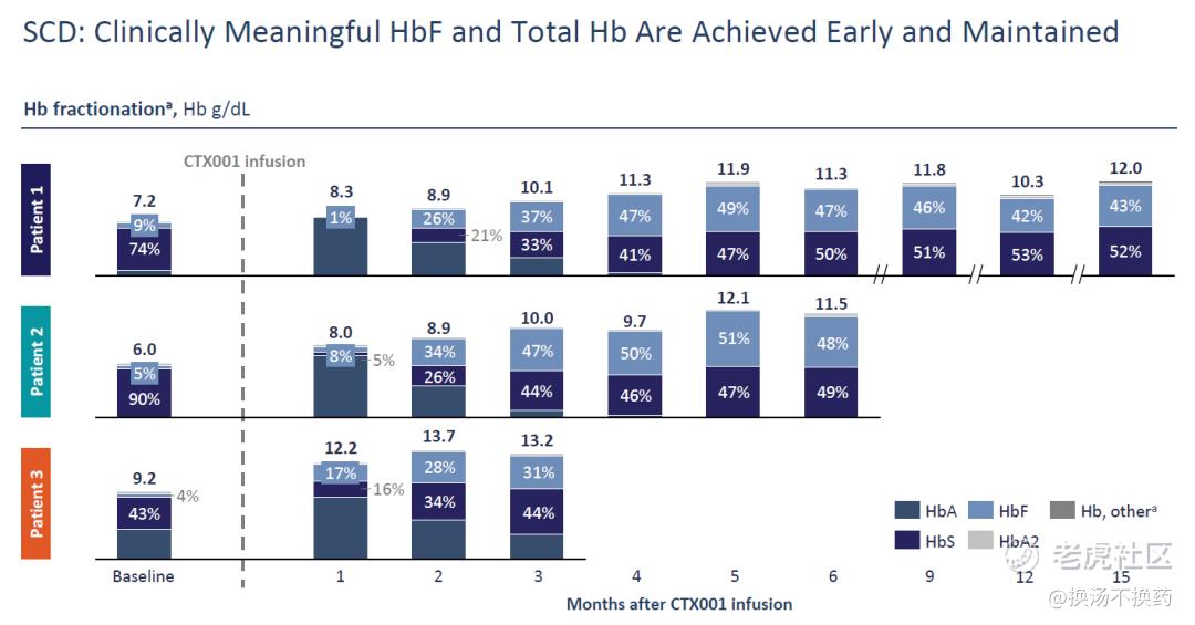 完成随访的3位SCD患者年龄在22-33岁之间,2名女性,1名男性 。 在接受CTX001治疗后,同样表现出了强劲、持久的HbF表达。