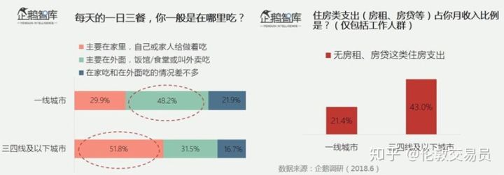 5.由于外出就餐费用低(超过50%的受调研三四线用户主要在家自己做饭,而近半的一线城市用户选择在外就餐或者叫外卖)且住房开支低(43%的三四线上班族无房贷支出),使得可支配收入并不显著低于一二线城市普通白领。