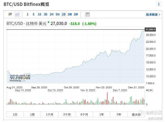 又见疯狂的比特币!据英为财情Investing.com数据显示,比特币价格周末一度突破28,000美元,整体市值超过5000亿美元。虽然比特币价格在周一早市稍稍回落,但依然位于27,000美元上方。不过,在收获更多关注的同时,分析师们担心比特币可能面临监管机构的进一步审查。