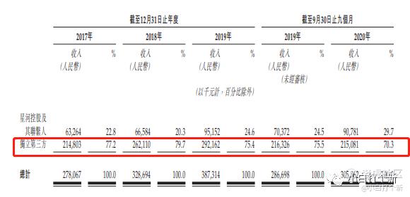 于往绩记录期间,公司大部分收入均产生自向星河控股及其联系人开发或拥有的商用物业提供之服务,于2017年、2018年及2019年以及截至2019年及2020年9月30日止九个月分别占收入总额的90.2%、88.4%、89.5%、89.5%及86.6%。