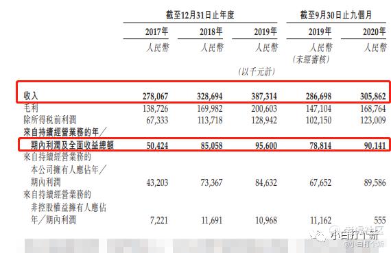 ■17至19年收入分别为2.78亿人民币、3.28亿人民币、3.87亿人民币,20年首九个月收入为3.05亿人民币。