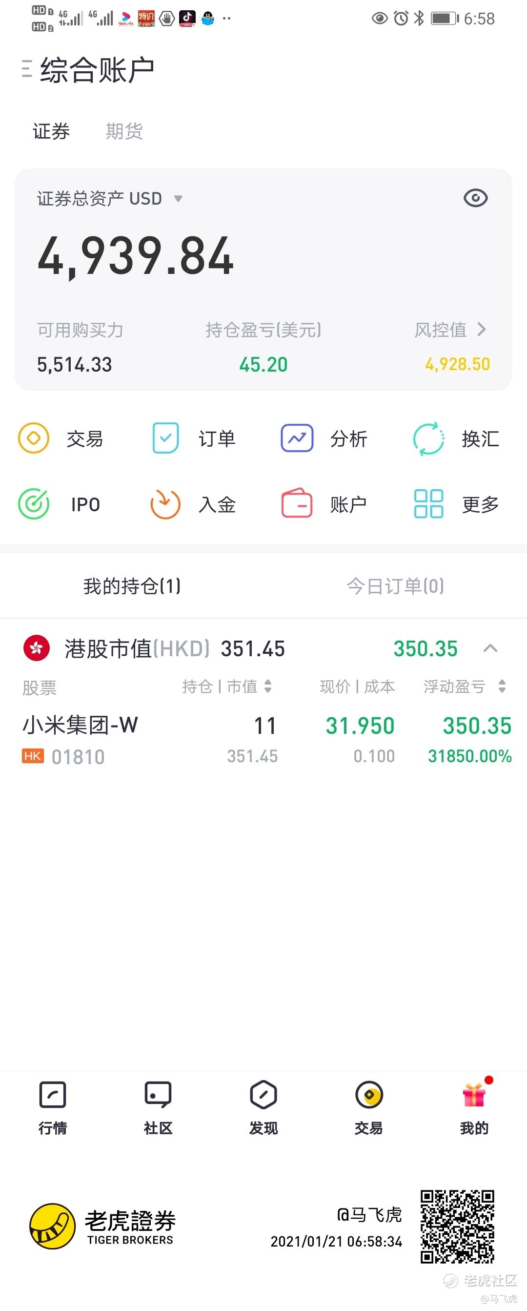 刚开通老虎,有11股小米奖励。😂🚞🤩