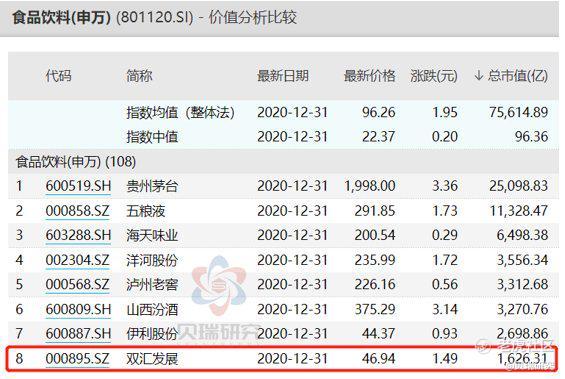 2019年,公司营业收入603亿,净利润57亿。截至2020年12月31日,公司市值高达1600亿,在食品饮料行业排名第8,妥妥的行业巨头。