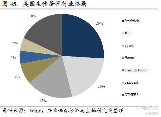 虽然有规模提升的催化剂,但是,屠宰业龙头们的天花板有多高呢?对于这一点,我们可以参考美国屠宰业的格局: