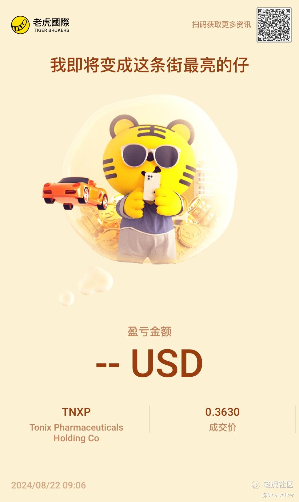 $Tonix Pharmaceuticals Holding Co(TNXP)$ 娱乐心态入了1000股,如果这逼能回到最高价,我将身价超1400亿[开心] [开心]