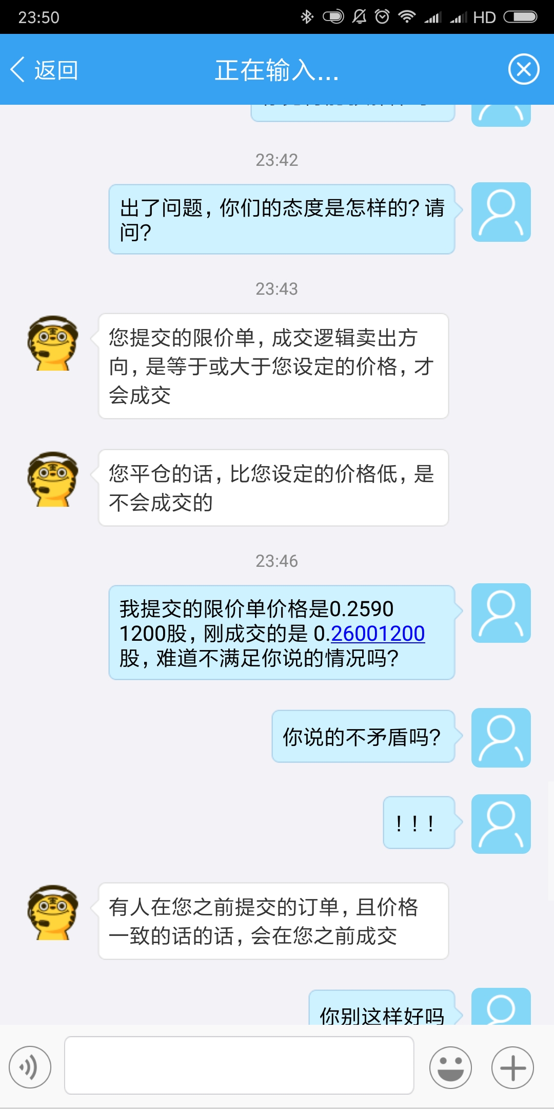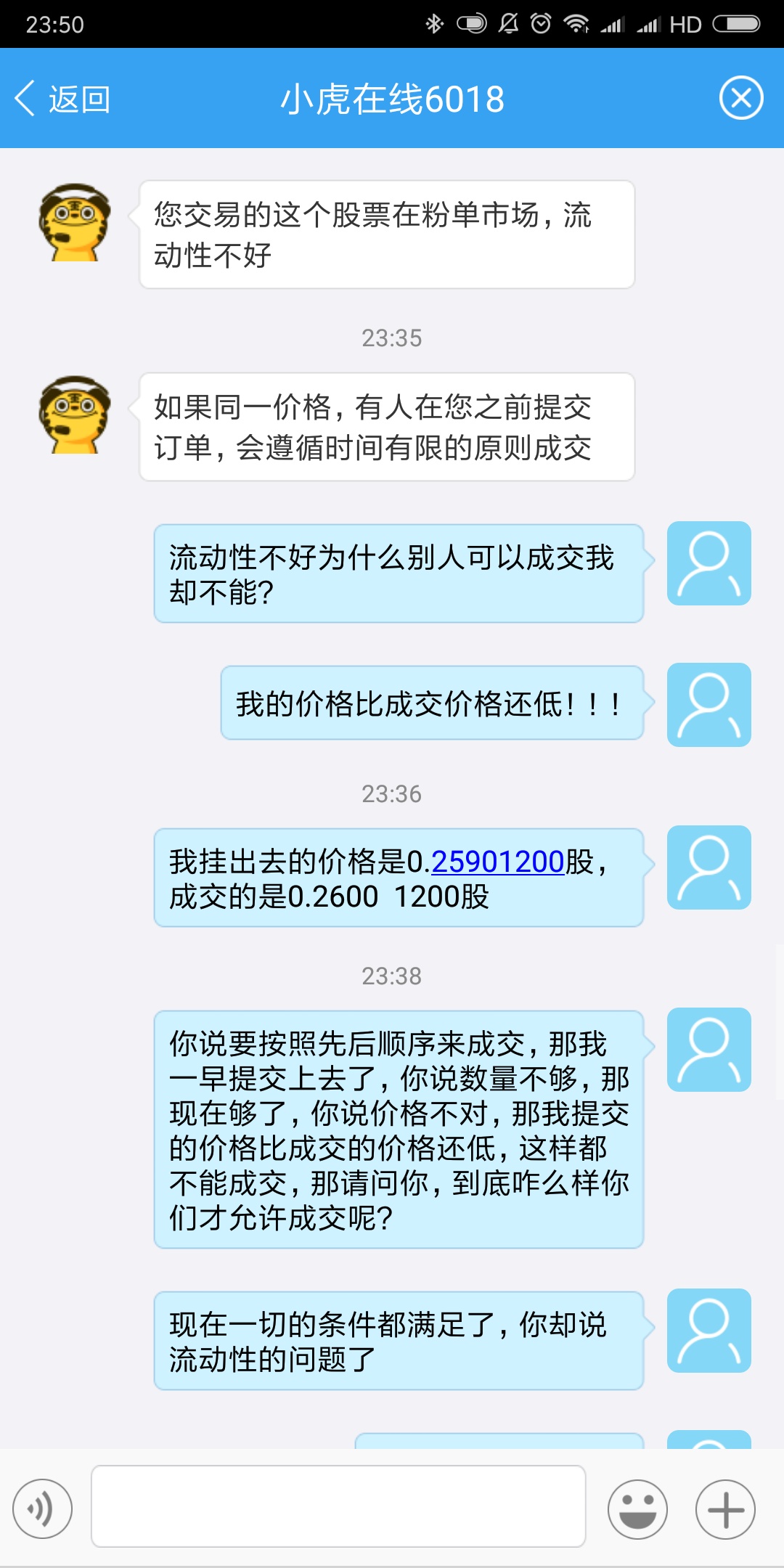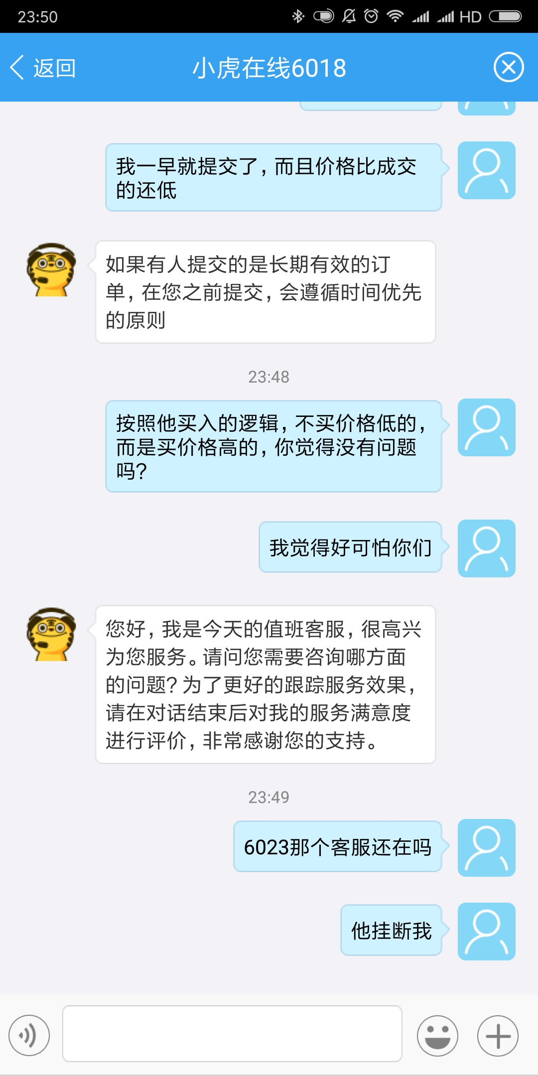 $Parkervision, Inc.(PRKR)$ 事情是这样的,我挂单这只股票很多天了,一直是小虎在线6023这个客服在跟我沟通,我也是按照他所说的来操作,开始挂出去是0.26 1200股,一直没有成交,即使价格达到了,数量超出了。我咨询客服6023说有挂单顺序要求,我就按照他说的一早就挂出去,但是还是没有成交,他说价格有问题,我就把价格调整了,改成0.2590,还是没有成交即使我看到有0.2600成交的,他那边一直在解释后来自己都解释不通了索性就挂断我,你们说老虎可怕吗?