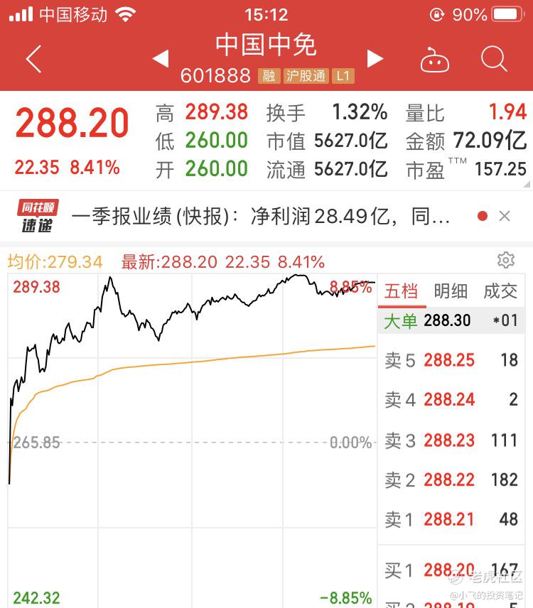 大盘没什么好说的了,流动性收紧拐点基本已经确认,指数上没什么值得期待的了,像去年那种行情,即使买指数基金都是躺赚的,今年只适合学习了,提高自己的选股和认知水平,毕竟逆风局翻盘才是质量局,甚至体验更好,昨天和小伙伴聊中免,$中国中免(601888)$大家都看好想抄底,没想到跟我聊天的功夫忘记了下单,真是耽误人家少赚了一个亿,中免昨晚出了一季报,虽然利润同比大幅增长,但是还是低于预期的,炒股炒的就是个预期差,说白了机构已经把公司的业绩研究了个底掉,大幅增长这个信息早已经反映在价格里面了,只是散户不知道而已,昨天跌停肯定是部分机构担心业绩不及预期,另外加上货币收紧所以上演了盘中闪崩,另外还传说某量化基金近期出现大幅回撤后客户赎回造成的被动型抛盘,今天开盘也是低开的,反映的都是这些情绪,低开高走,说到底还是短期情绪波动的结果,猜涨跌也没多大意义,还是从估值看比较靠谱,对于中免21年每股收益预期5.84元,市盈率45.5倍左右,在大环境收紧的背景下,安全边际还不够高,如果对这个市盈率没有概念,我们对比一下茅台就好了,A股没有哪个公司敢说护城河、现金流比茅台还牛得吧,茅台21年每股收益预期43.28元,市盈率给到了46.7倍,这么比较的话,中免给的估值还是不低的,何况中免靠牌照吃饭的,能给你中免也能给别人,那时候的走势就可以参考上机了,短期来看连续大涨还是大跌都需要出现新的基本面信息来催化,比如利率调整啊、免税政策啊等等,所以短期还是横盘震荡行情。