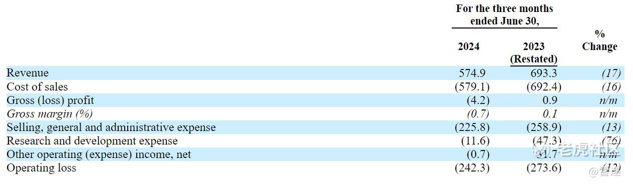 Polestar在2024年第二季度运营亏损2.42亿美元,较上年同期的运营亏损2.74亿美元收窄12%。