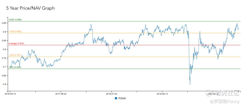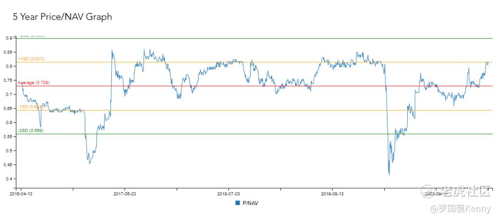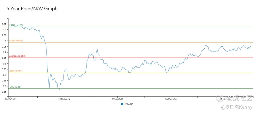 - Price/NAV: Despite trading at close to their 5 years high, Keppel REIT, Lendlease REIT and Sabana REIT are slightly undervalued.Some of you might wonder how is Sabana REIT trading at close to its 5 years high in Price/NAV, despite it dropping in price over the past 5 years. The chart below shows Sabana REIT’s price over 5 years.