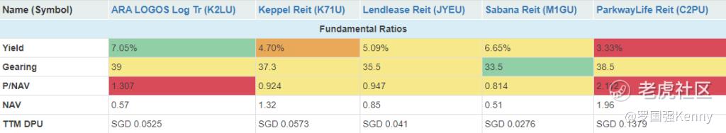 The above table shows the corresponding fundamental ratios of the 5 REITs. Some observations that can be made are shown below: