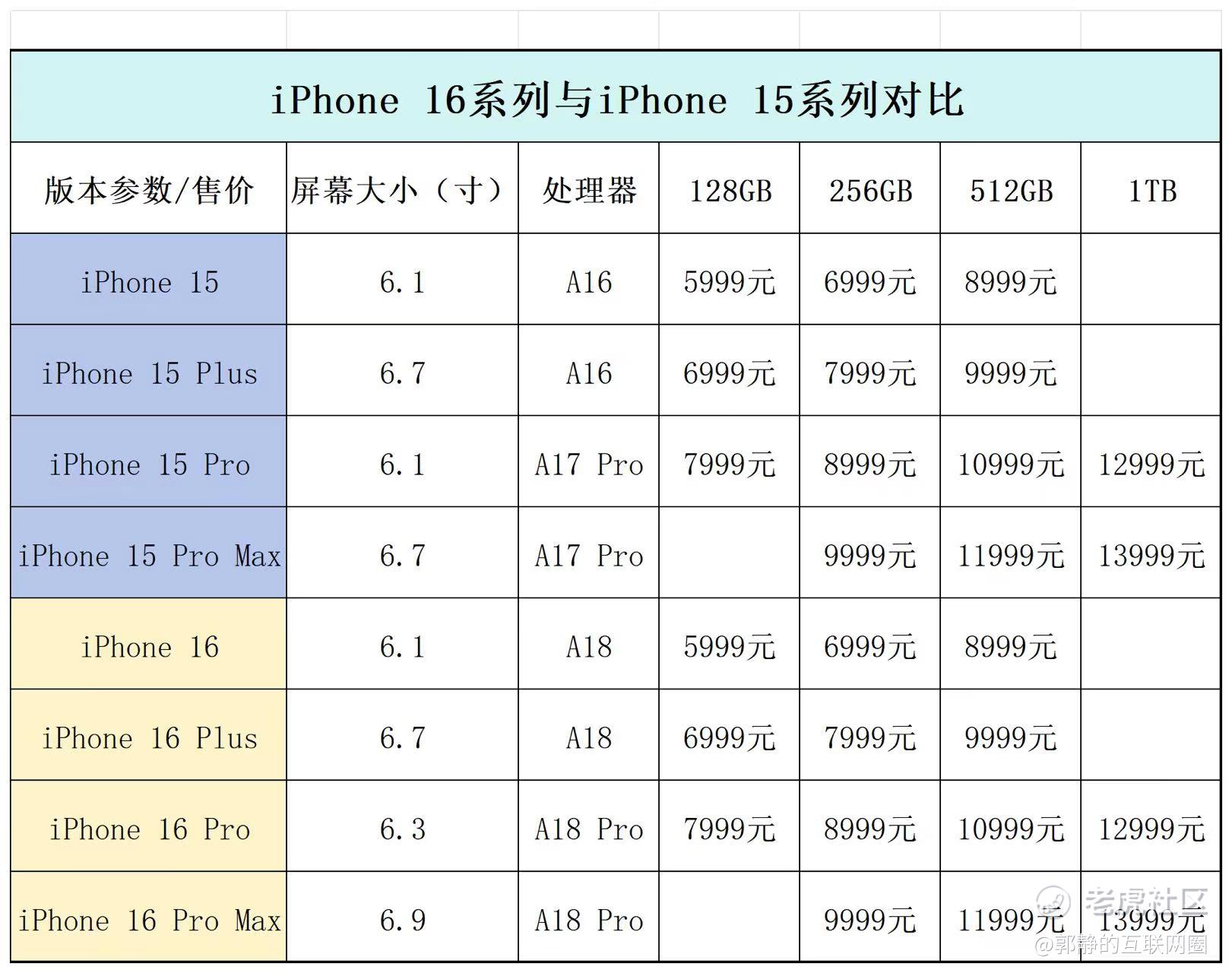 价格方面,iPhone 16系列起售价为5999元,各机型价格与上代机型一致,并未涨价。