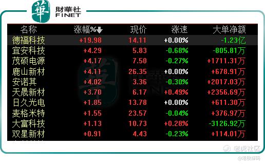 继9月10日的显著上涨之后,9月11日折叠屏概念股持续展现出强劲的增长势头。其中, $德福科技(301511)$ 录得涨停板, $华映科技(000536)$ 3个涨停板, $宜安科技(300328)$ 涨4.29%,茂硕电源(002660.SZ)涨4.17%,鹿山新材(603051.SH)涨4.11%,安诺其(300067.SZ)上涨4.02%,日久光电(003015.SZ)、大富科技(300134.SZ)等亦纷纷跟涨。