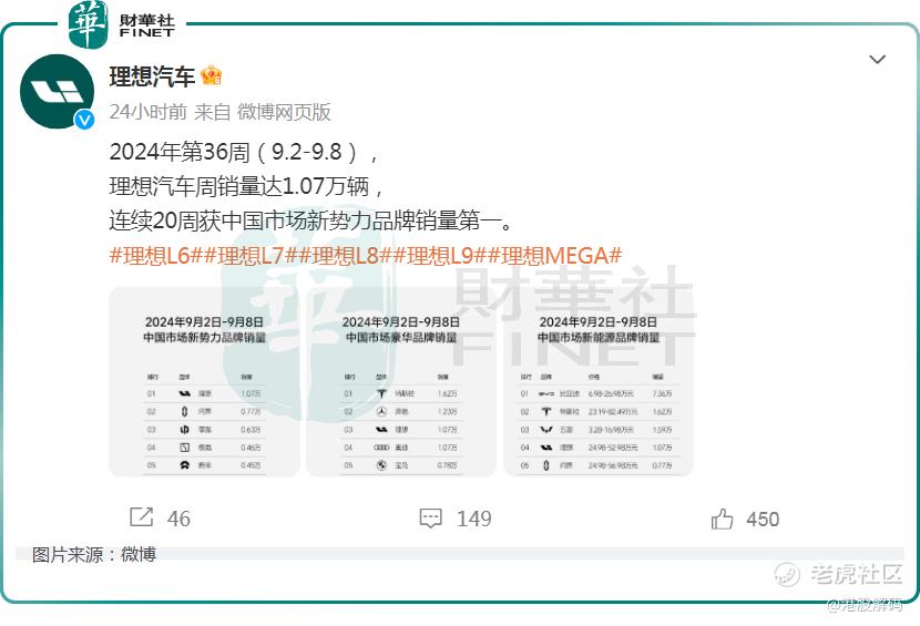 理想汽车则发布了新一周(9月2日至8日)销量榜,以单周1.07万辆的成绩继续稳居国内新势力第一名,同时也超越奥迪和宝马成为仅次于特斯拉和奔驰的豪华品牌。