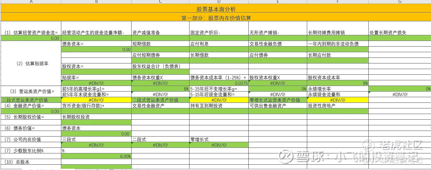 我本科及硕士和金融专业一点关系都没,对炒股(赚钱)的研究纯粹出于兴趣,股票的魅力在于买入卖出本质上都基于一定的逻辑,只要搞对了逻辑,赚钱是大概率事件,本科专业读的是航海相关专业,大一军训结束了才知道毕业的工作方向是航海,还是那种全球航线,给我上课的教授好多兼职船长,或者说兼职当老师,天天上课净讲些什么遇到龙卷风啊、抗击索马里之类的英雄事迹,搞得我大四考研十分用功,并且成功从航海转到了汽车专业,因为我是晕船的,但是硕士毕业又去搞航改机发电,真的是把海陆空的动力装置都搞了一遍,有点扯远了,我想说的是,如果是金融专业科班出身,实际上最先接触的肯定是价值投资,价值投资里面对估值的建模采用都是DCF公司现金流贴现,我还特地花了三个月去研究了下,建模的过程大概是下面这种画风,特别恶心,当时在茅台900多元的时候,我用模型估算合理价位大概也是这个价格,所以成功的错过了茅台翻倍的行情,后来才知道这种方法得到的估值结果一般都比较低,而且像自由现金流为负的企业根本就不适用,果断抛弃。