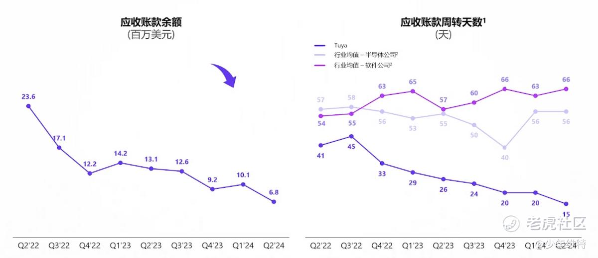 涂鸦成立2014年,经历了近10年的积累,不仅在技术上有着先发优势,在业务上也不同于其他大厂深耕工业自动化、政府类项目,而是深耕消费级场景,如早期的照明电工,到消费级安全、大家家电、厨电、宠物、节能等终端设备的网联+智能化业务,形成了涂鸦自身的生态。相比传统大型工业、政府类项目,项目交付周期往往要6-18个月时间,涂鸦聚焦的业务领域往往交付周期更短,且具备较高的行业话语权,公司财务指标上,应收账款和周转天数远低于行业均值,综合毛利率穿越周期持续爬升至接近50%。