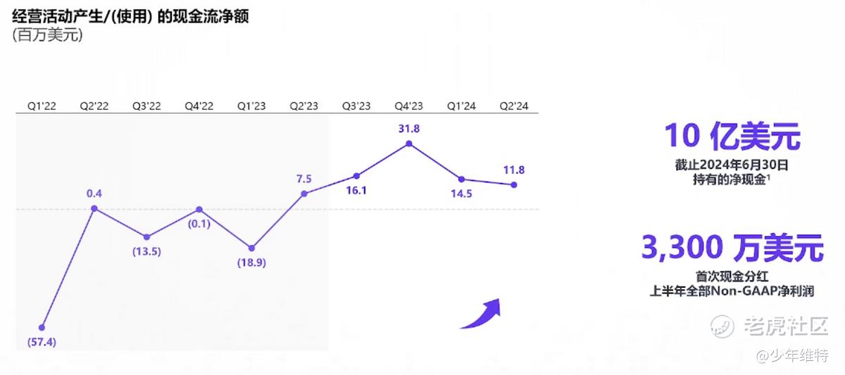 单季度Non-GAAP经营利润实现740万美元,转正即分红,且拥有千万美金的单季度经营性现金流的造血能力。