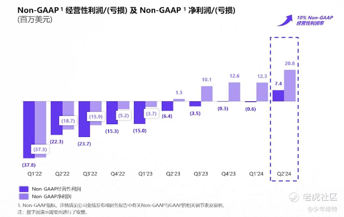 Non-GAAP经营性利润740万美元,首度实现季度运营盈利,Non-GAAP经营利润率达到10%。