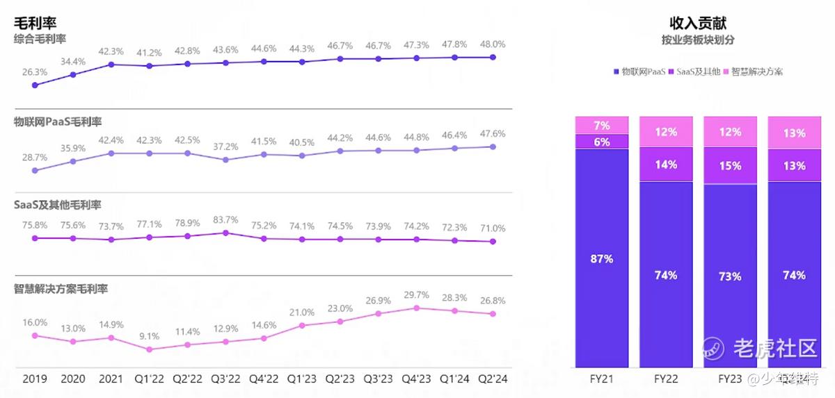 在智能解决方案业务方面,YoY达到了44%,Q2毛利达到26.8%,连续六个季度稳定在20%以上,且Q2收入占比来到了13%,与SaaS业务占比几乎持平,正在逐步成长为公司的第二增长曲线。