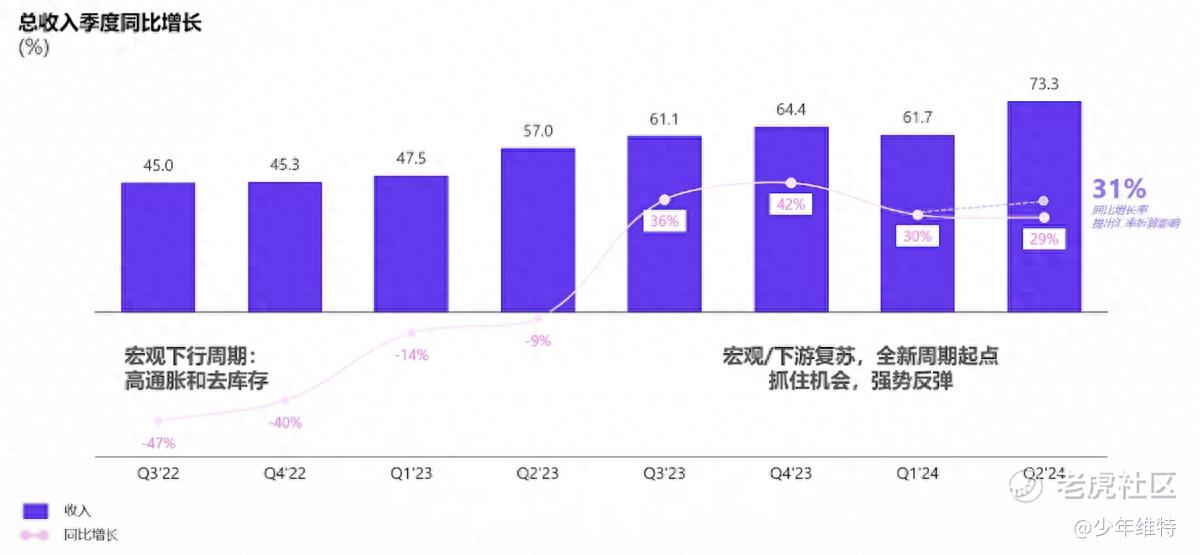 连续四个季度收入增长保持在约30%及以上,业绩增速稳定,市场空间巨大。