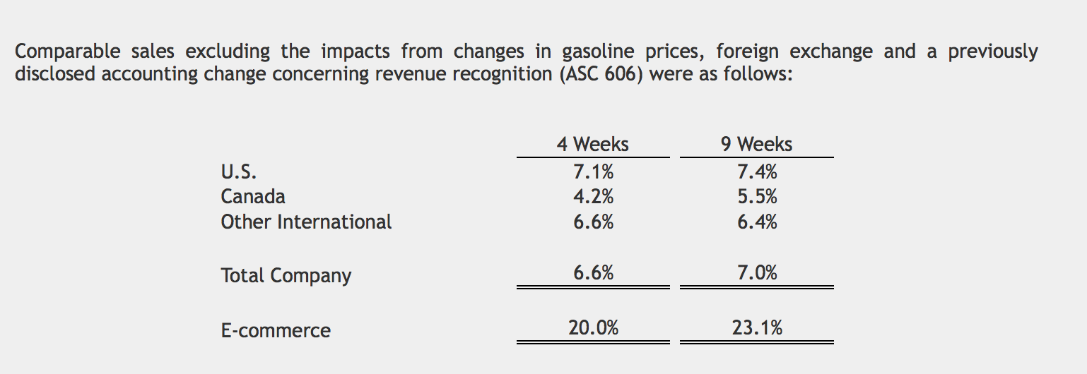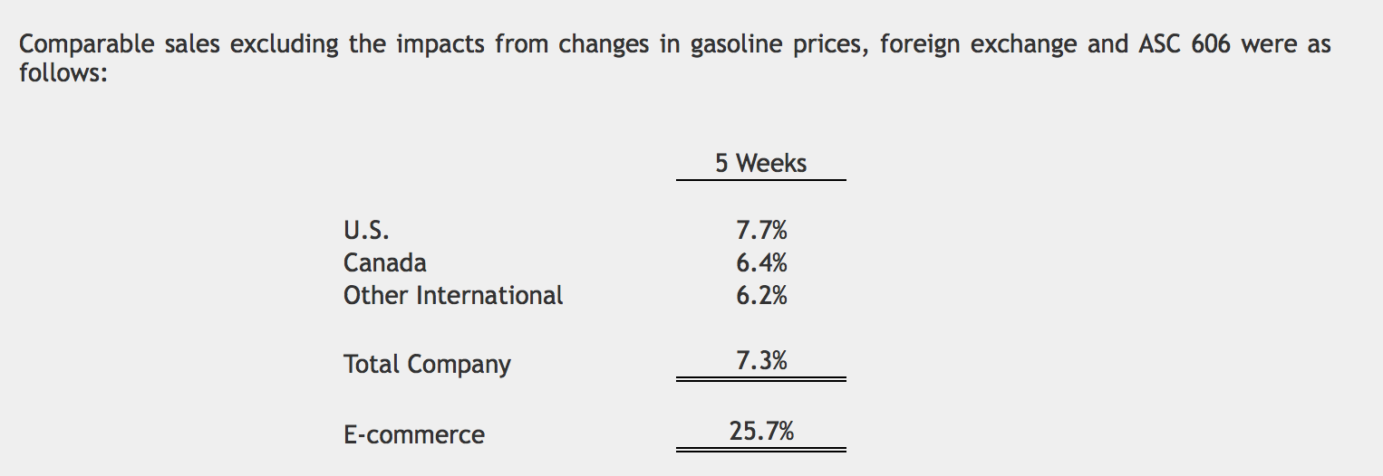 最后要提的是两个数据,可比店销售额(comparable-store sales)和电商销售额(e-commerce sales)(图片来源:公司财报)