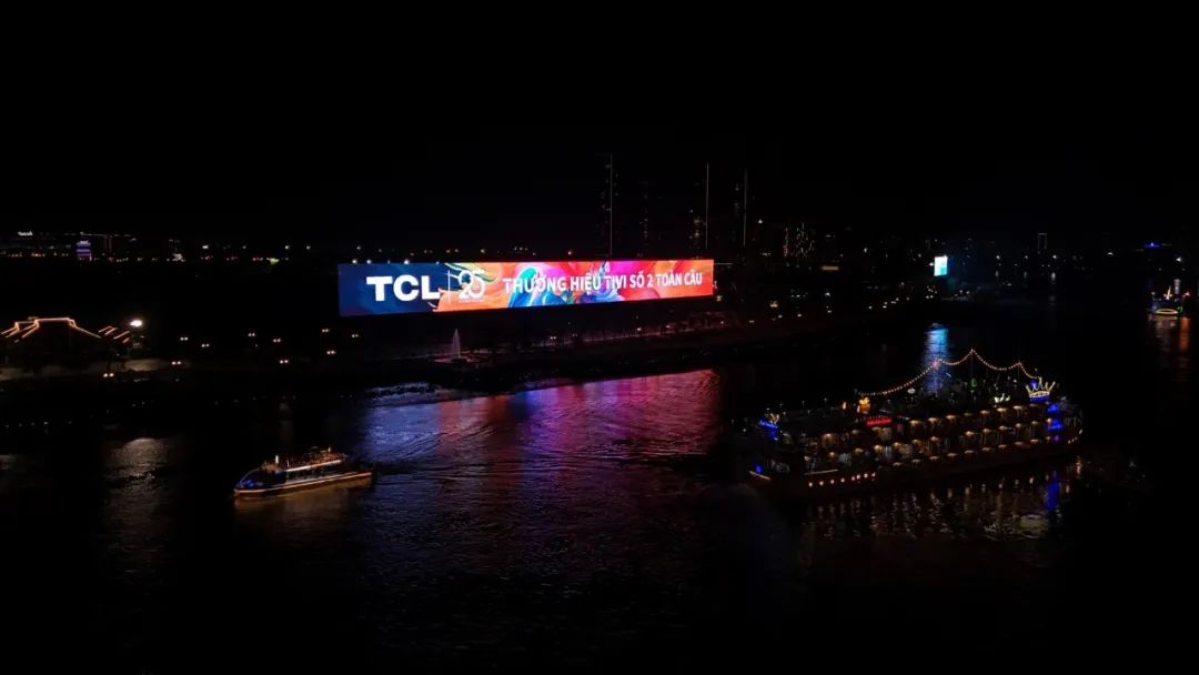 西贡河畔的TCL全球化25周年的宣传牌,胡志明市,2024年