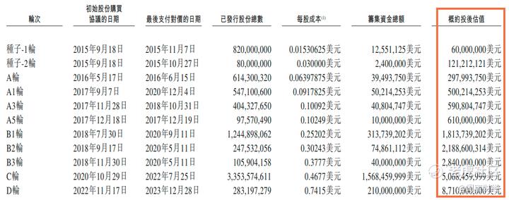 招股书披露,2023年12月,地平线在完成D轮融资后,其估值高达87.10亿美元(约 615亿人民币)。
