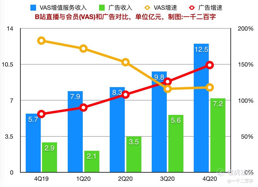 4Q20是B站广告业务连续7个季度同比加速度增长,可以预期的是,未来相当一段时间内广告业务的增速会持续高于B站大盘的速度,有望晋升为第二大营收支柱。在当前手游仍是它最主要收入来源、但受限于发布周期而波动的趋势下,需要一个变现能力强的业务顶上去。