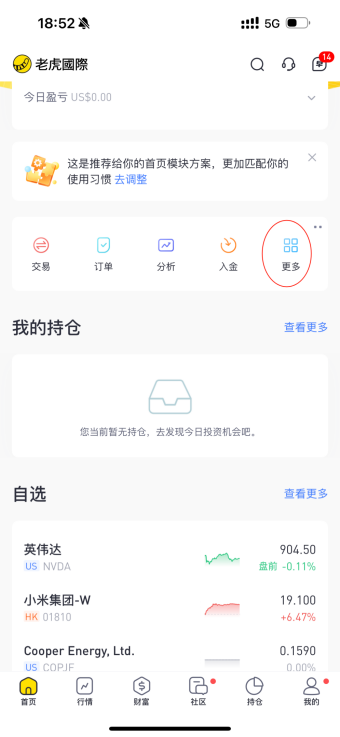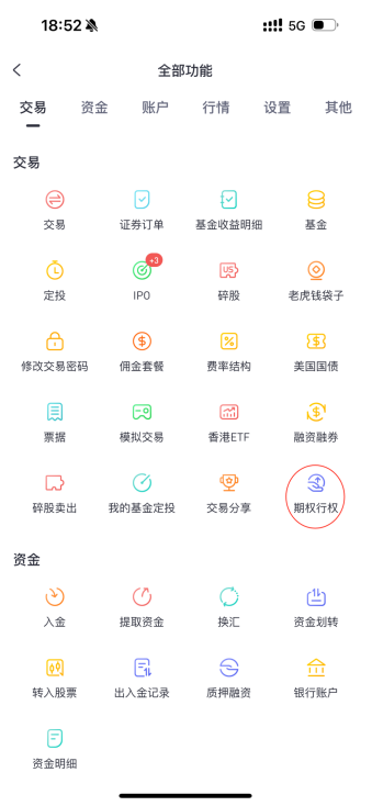 进入账户首页,点击更多。在交易栏中选择期权行权即可行权。