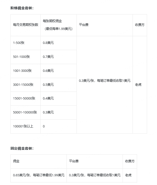 美股佣金:美股期权佣金根据套餐类型有所区分,美股行权不收任何费用,