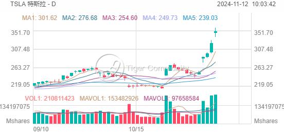 周一,Wedbush Securities将特斯拉的目标价从300美元上调至400美元,称他们认为特朗普入主白宫是特斯拉和马斯克未来几年在自动驾驶和人工智能(AI)领域的“游戏规则改变者”。