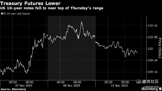 截至美东时间周一下午3:30,10年期美国国债期货下跌约11个基点,隐含收益率大约为4.35%。如果这一水平在周二亚洲市场开盘时延续,意味着10年期国债收益率将较周五收盘时上涨约5个基点。