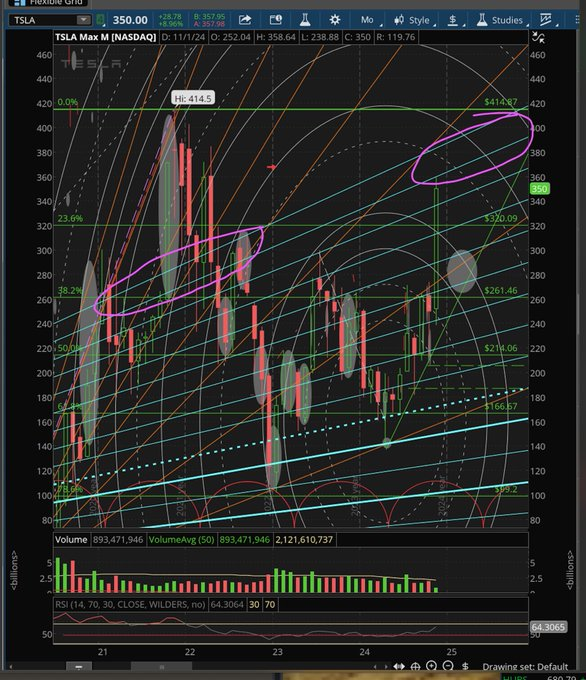 我关注的一个期权KOL,他发了一张图表示,特斯拉的目标价在400美元上方。