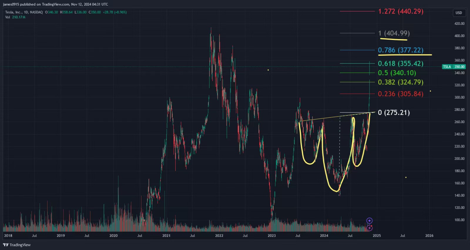 还有一位做分析的朋友认为, $特斯拉(TSLA)$ 目前在技术形态上数据倒置头肩底,他认为特斯拉的短期目标价高点在405美元, 同时,在377美元价位处也有阻力。