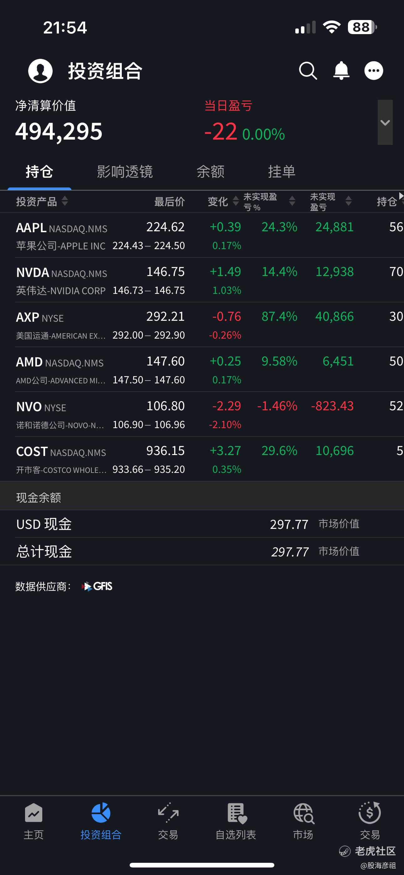 假设懂王交易热度真的过了拐点,那随着热度褪去,其他优质股大概率就要迎来反弹。流动性总是在的,这里降温,就流去别处。希望我的持股接下来一段时间能跟上大盘。