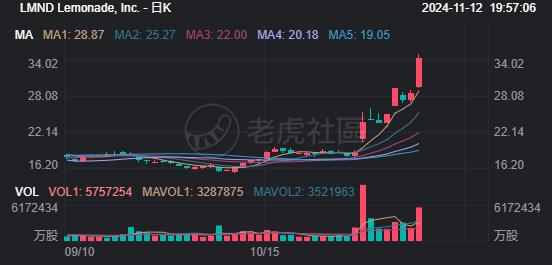 $Lemonade, Inc.(LMND)$ 的股票上涨至52周新高34.95美元,反映出今年至今112.28%的涨幅。