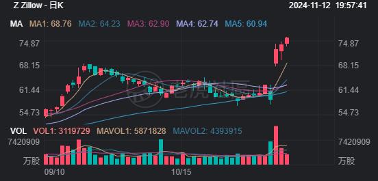 $Zillow(Z)$ Zillow Group的股票达到了52周新高75.92美元,今年至今涨幅为30.99%,这一涨幅是得益于公司强劲的第三季度财报。