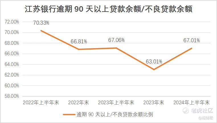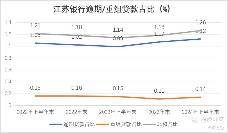 还需要注意的是:江苏银行逾期贷款占比自2023年上半年以来开始上行,逾期及重组贷款占比之和亦是如此,至2024年上半年二者总和已经上升12个BP,而江苏银行不良率却是十分平稳。