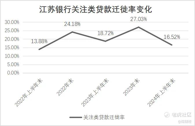 近年来,江苏银行年报中的关注类贷款迁徙率远高于半年报,且二者也出现了周期性变化,即半年报下降、年报升高。