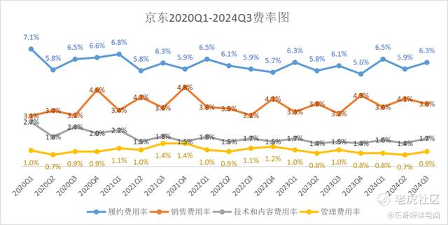 2024年Q3京东营收为2604亿元,同比增加5.1%。和市场普遍预期基本一致。对比Q3的社零大盘只有2.5%的增长,京东已经跑赢。但是略低于电商大盘,作为行业头部取得增长已属不易。