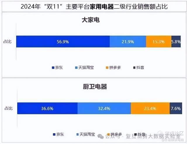 在刚刚结束的双十一当中,京东凭借这一优势,市场份额提升。复旦消费大数据实验室数据显示,京东在双11主要平台家用电器行业份额占比44.0%,其中大家电份额占比高达56.9%,国补刺激下带电品类拉动明显,京东整体市场份额提升。