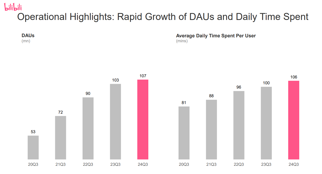 真从业绩的角度,B站在Q3表现得也并不失色。