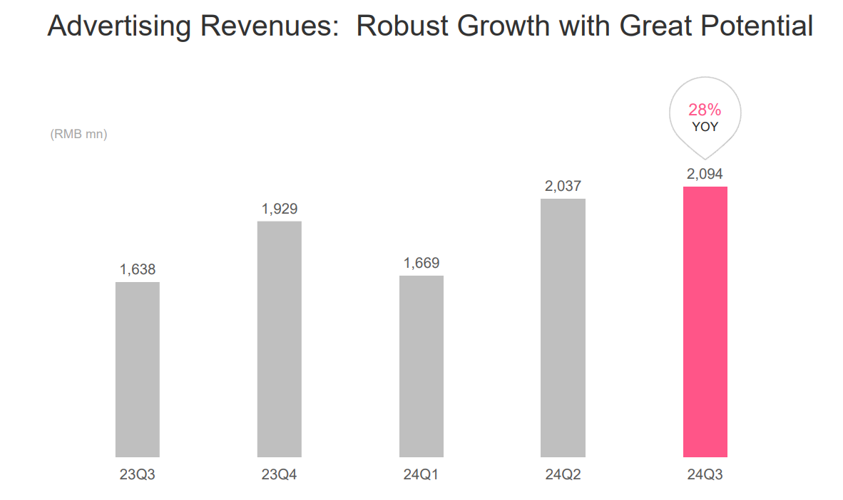 广告收入同比增长28%,达到20.9亿元人民币。