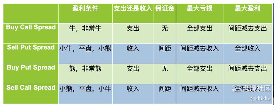 可是对我们这些还没有熟练掌握期权知识就贸然入市的普通投资者,很可能被期权这把双刃剑所伤害,毕竟风险和收益总是如影随形的。而作为一个期权卖家,所承担的风险也更大。从下面这个表,可以清楚地对比一下盈利条件、是支出还是收入、需要的保证金、最大亏损、最大盈利,把这些项目都列出来对比,我们这些新手们才能知道什么是最适合自己的。