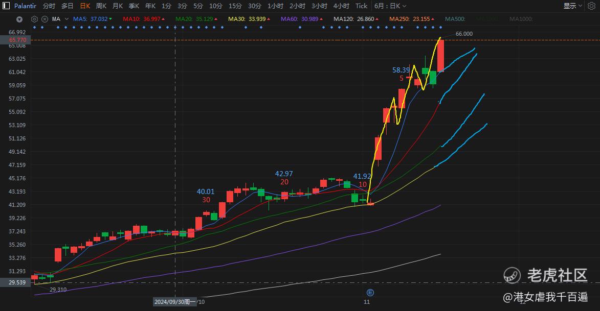 PLTR,11月初的财报后进入主升浪,涨幅达到50%+,日线三浪后目前进入最后冲刺阶段了,周线乖离率也超级大,短线多单可以适当止盈了$Palantir Technologies Inc.(PLTR)$