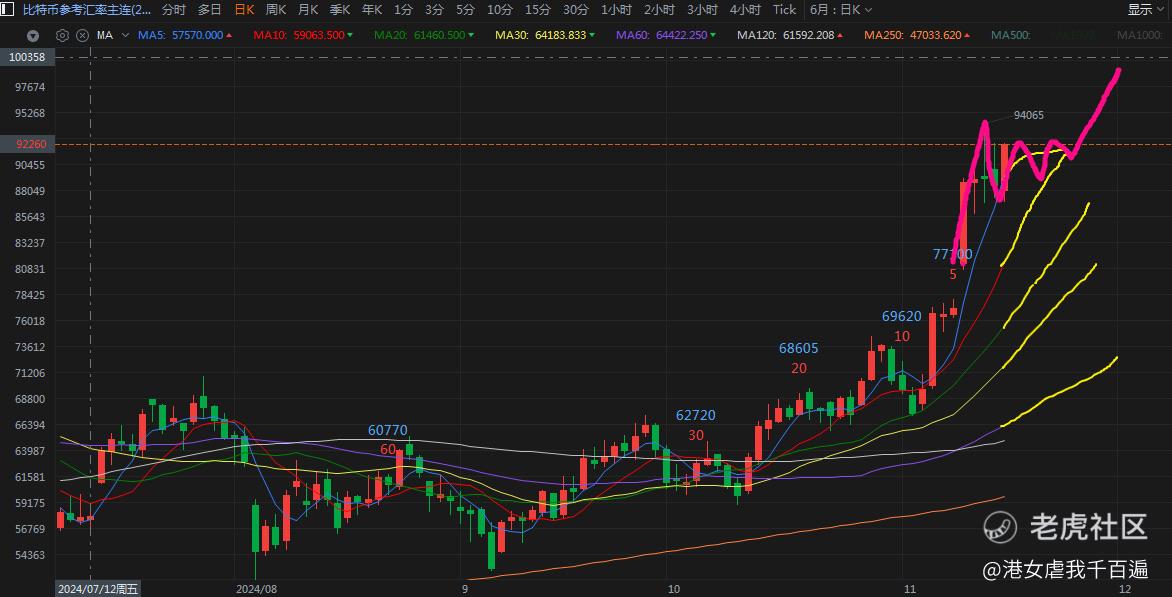 上周复盘时大饼的价格还是7.7万美元,现在涨到9.2万美元,一周涨了20%,这段时间领先于全球各类资产,接下来有望继续逼空冲上10万美元,或者只要不跌破8.7万美元这个支撑,破10万美元是迟早的事。