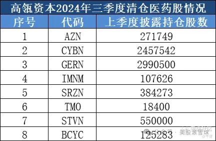 三季度,高瓴资本清仓了8只医药股,而在上季度,高瓴资本没有清仓医药股。